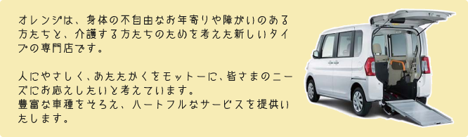 福祉車輌の専門店として販売やレンタカーサービス等を案内