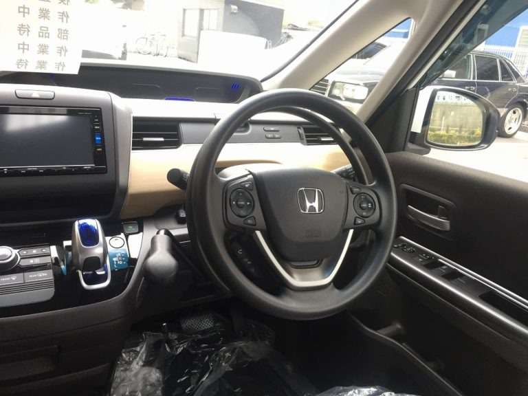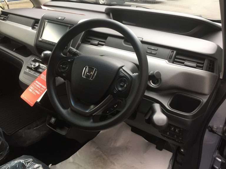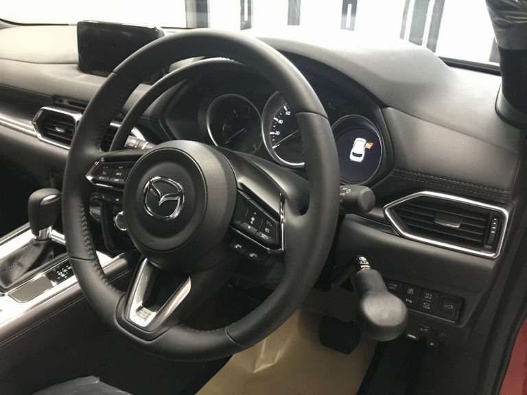 ステアリング奥に取り付けられたリングでアクセル、レバーでブレーキ操作が行えます。